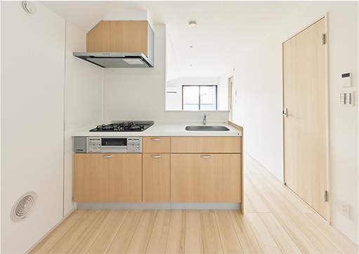 多様なライフスタイルに合わせて入居者にとってうれしい設備が充実。インターネット完備や宅配ボックス、3口ガスコンロはもちろんのこと、追い炊き機能付きのお風呂やゆとりを持って使える広い洗面室を採用することで住まいやすさを追求しています。また、自然と会話が生まれる対面キッチンには、デザイン性が高く、雰囲気をオシャレに見せてくれる人工大理石ワークトップを取り入れました。