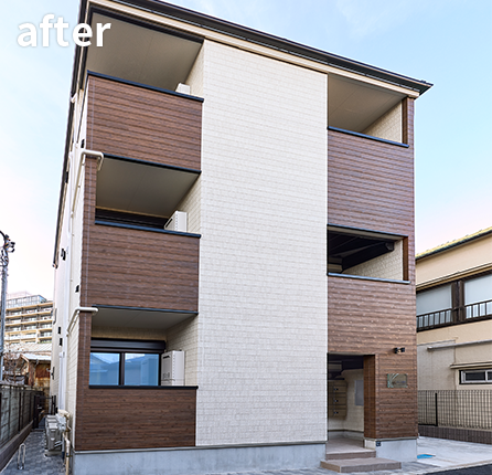 ご家族が大切に残された土地を相続し、その土地を守るため3階建て全6戸1LDKと1DKの木造アパートへ建て替えを行いました。