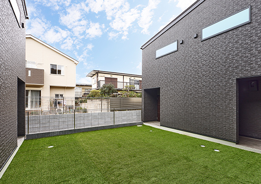 中庭に完備したドッグランでは、ペットたちがのびのびと走り回ることができ、周りに気兼ねなく遊ばせることができます。またペットシャワーを屋外に設けることで、散歩や外遊びをした時に汚れを落としてから室内に入ることができ、ペットとの生活を考えた快適な暮らしを叶えられます。